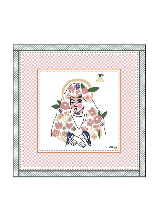 SKU: HS-032-S-55 カーパティア地方の20世紀のガラスイコンに触発された聖女マリアのイメージをあしらったヘッドスカーフ。 55cm x 55cm シルク100% ウクライナ製 手作り ※全て手作りとなっておりますので、多少の個体差がございます。あらかじめご了承ください。 【購入について】 本サイトは受注のみの購入となります。 設定された受注期間中にオーダーを頂戴し、期間終了後にブランド側が生産に入ります。 そのため生産都合でお届けまで2-3ヶ月かかる場合がございます。 商品ページに記載あります、予定納期と合わせて、必ずご購入前にご確認ください。 「特定商取引法に基づく表記」を必ずお読みの上、ご購入ください。 また生産は全てウクライナ国内で行われているため、現在のウクライナ紛争の状況次第でお届け期間が更に延長される可能性がございます。 ご迷惑をおかけしますが、弊社・ブランドがコントロールできかねる状況となりますので、納期変動の可能性があることを事前にご了承ください。 ※注意事項 - GUNIA PROJECTの製品は厳選された素材から作られており、正しくご使用いただくことで末永くお使いいただけます。 - ドライクリーニングのみ。 - 水や化学物質との接触を避けてください。 - 裏側からアイロンしてください。