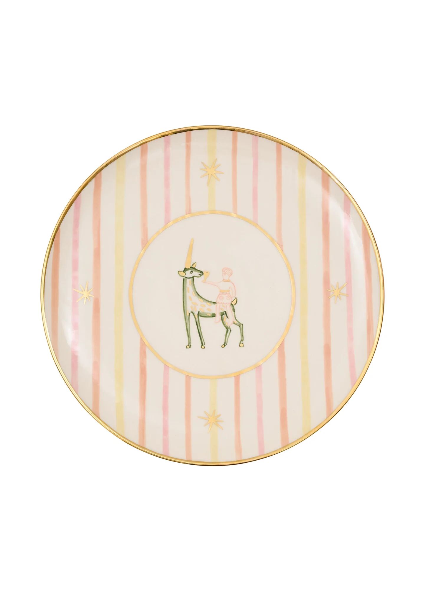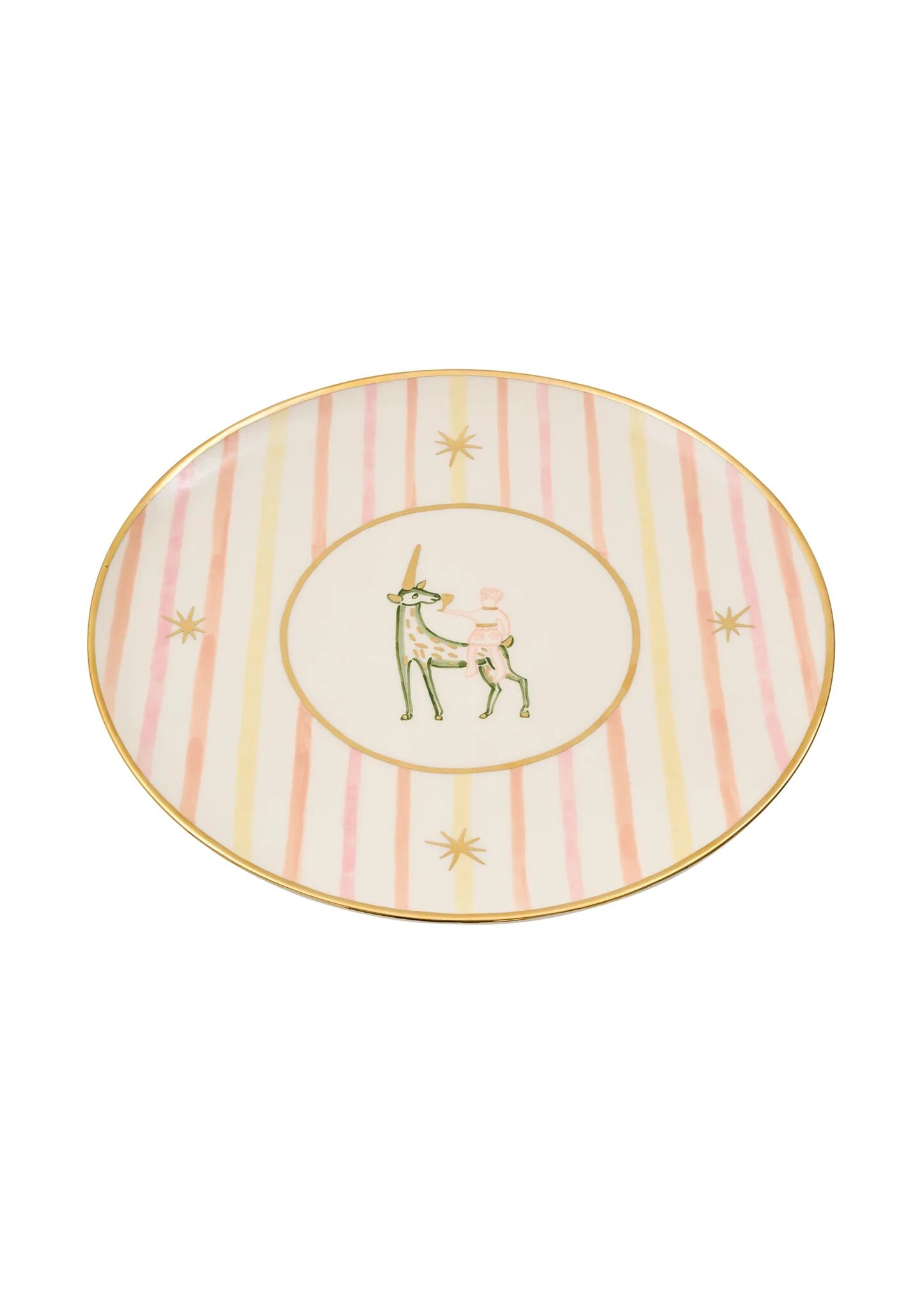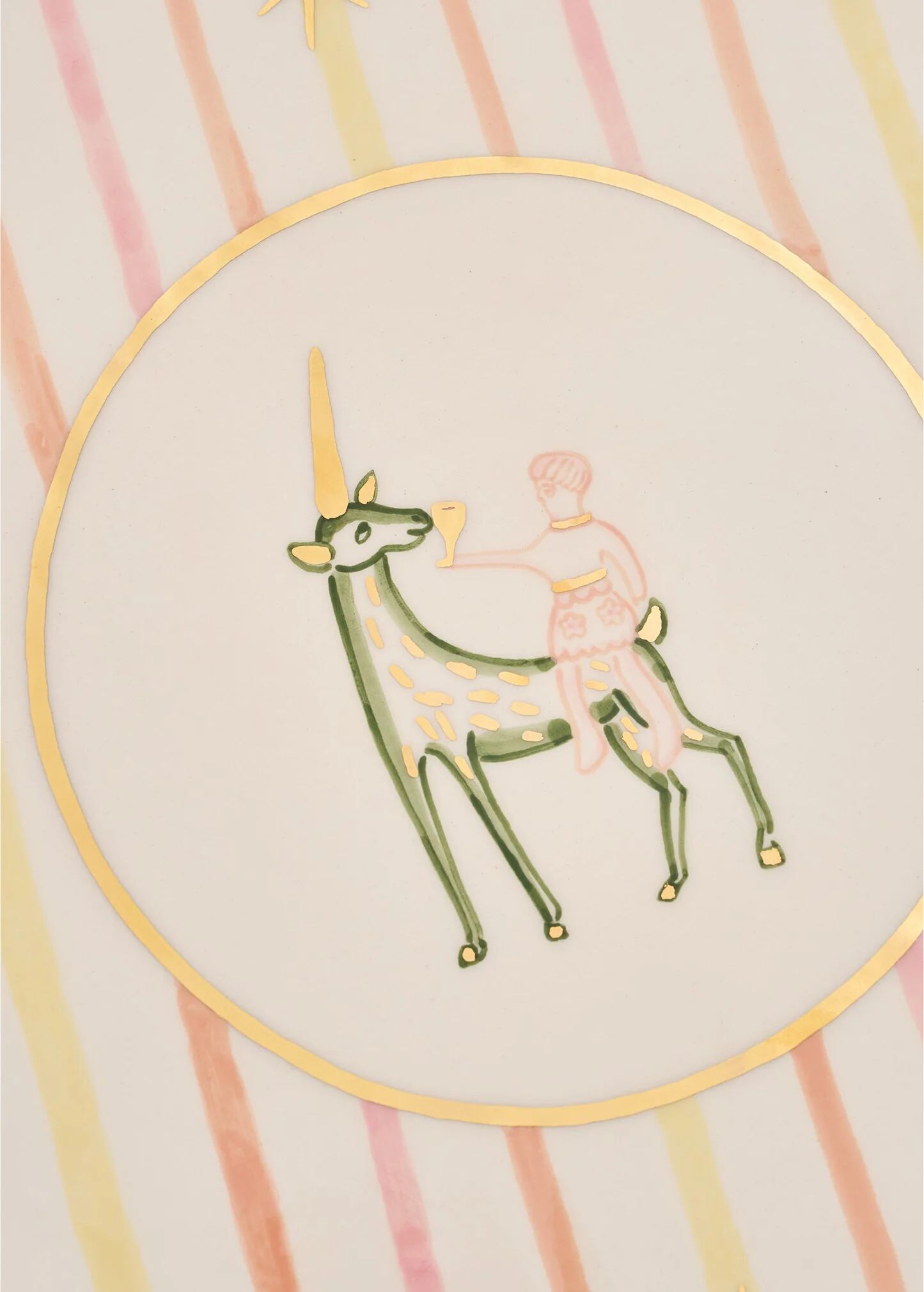 このデザインは、希少な絵付けのアンティーク暖炉タイルに着想を得ています。神話的な信仰によると、ユニコーンはそれに出会ったすべての人に幸せをもたらす存在とされています。各プレートは手作業で制作・絵付けされ、釉薬と金彩が施されることで、セラミックアイテムとしての唯一性が生まれるとともに、職人の支援や伝統の継承にもつながります。この象徴的な作品は、心に残る贈り物や大切な家族の記念品、あるいは単純に愛されるホリデーアイテムとしてお楽しみいただけます。
