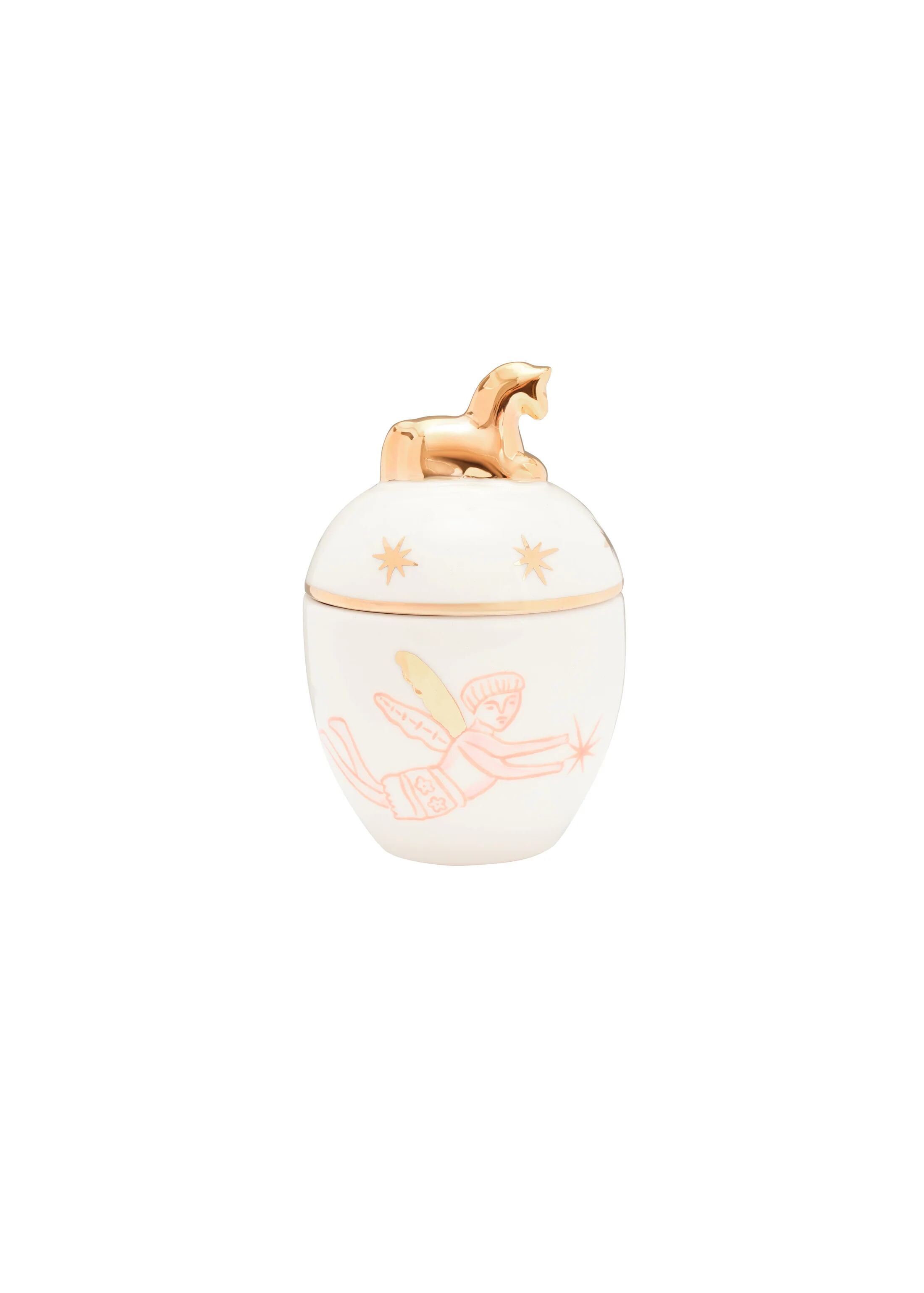 ナイーブな刺繍のルシュニキ(rushnyky)とウクライナの祝祭からインスピレーションを受けたハンドペイントデザイン。蓋は、木製のおもちゃの馬の形を模したものです。